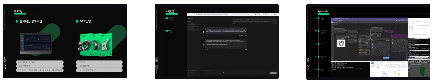 - Teams integrated AI tools, Gemini, Nodit MCP, Web3 Data API, and CCXT, combining cutting-edge infra with practical design.