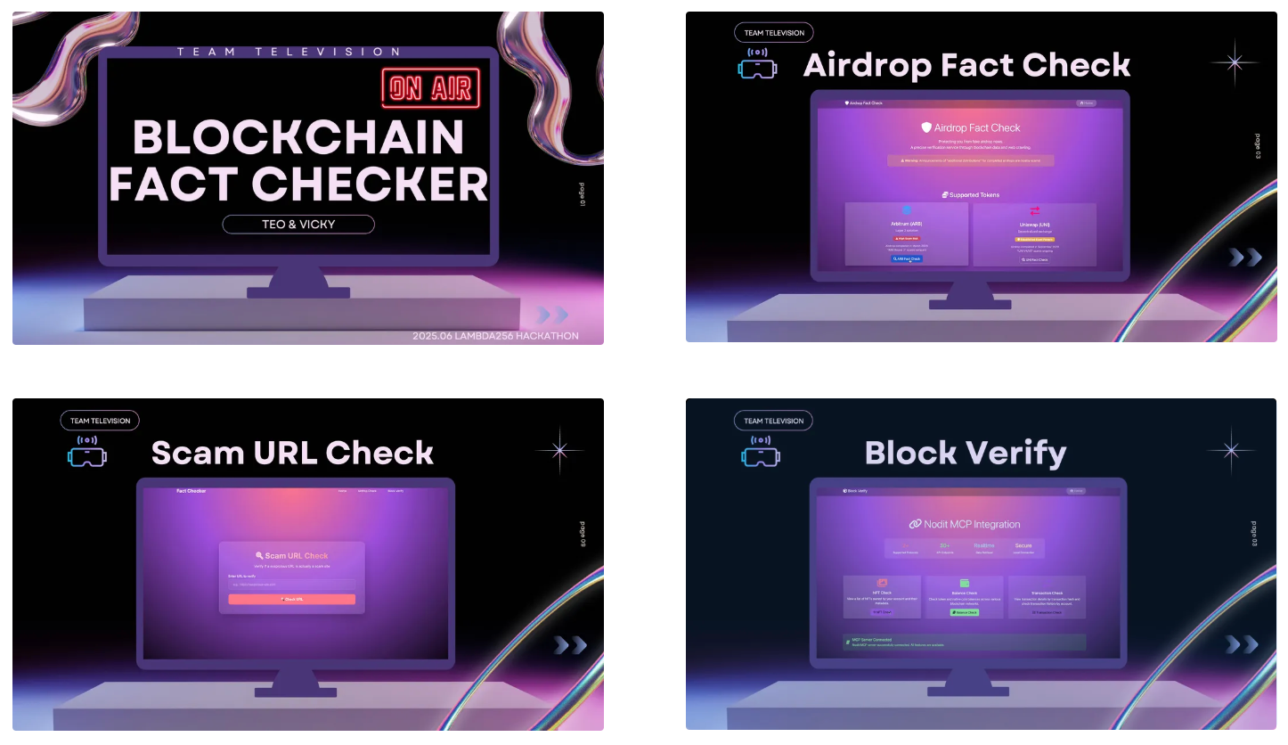 Television was built to help users stay safe. The project offers a scam-checking and airdrop fact-checking tool that validates website URLs against official sources. By leveraging Puppeteer MCP through Gemini, users are able to verify suspicious links and compare them directly with trusted originals which helping reduce the risk of phishing or fake airdrops.