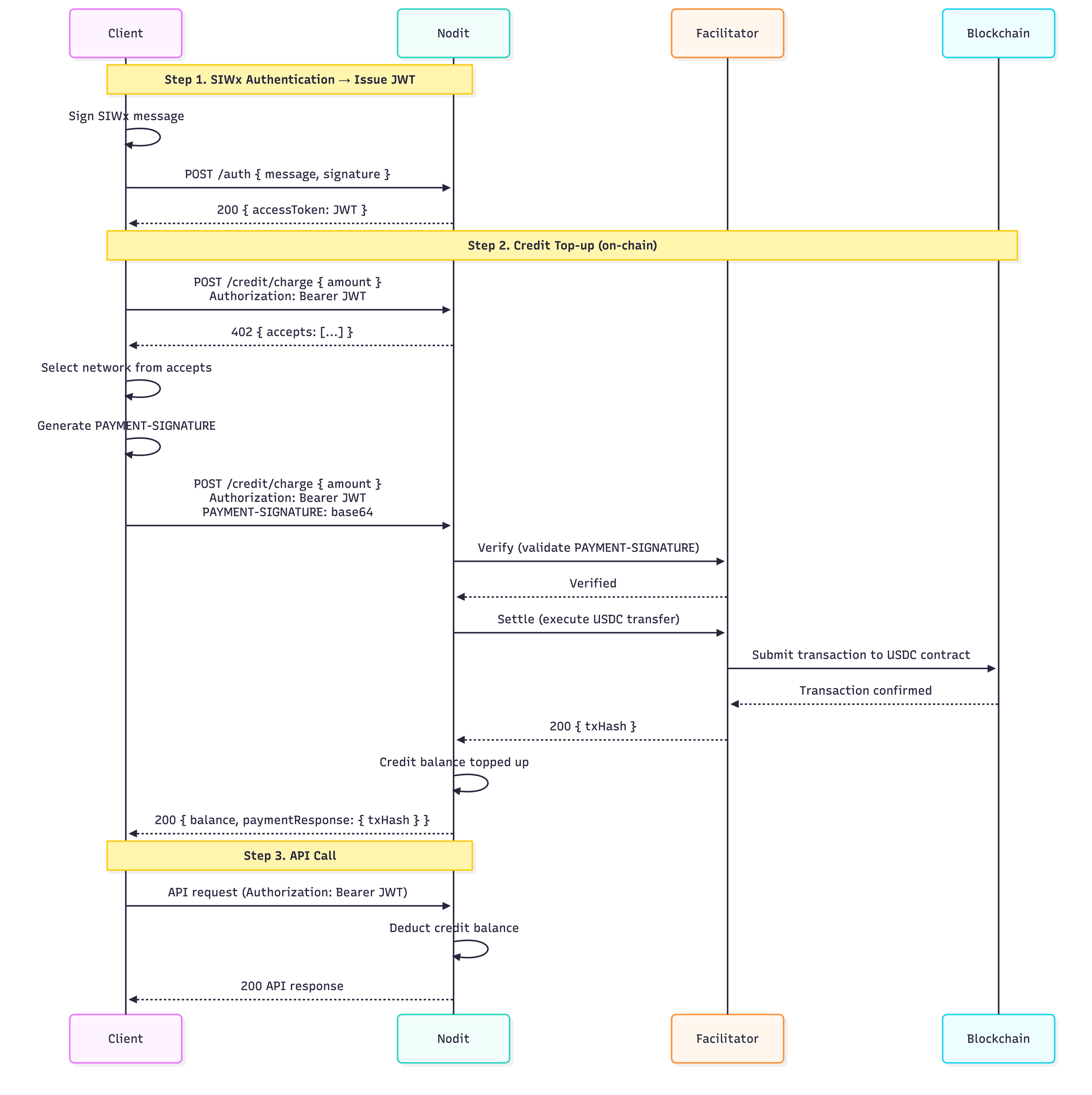 Nodit x402 Request and Payment Flow for Credit-Based Billing