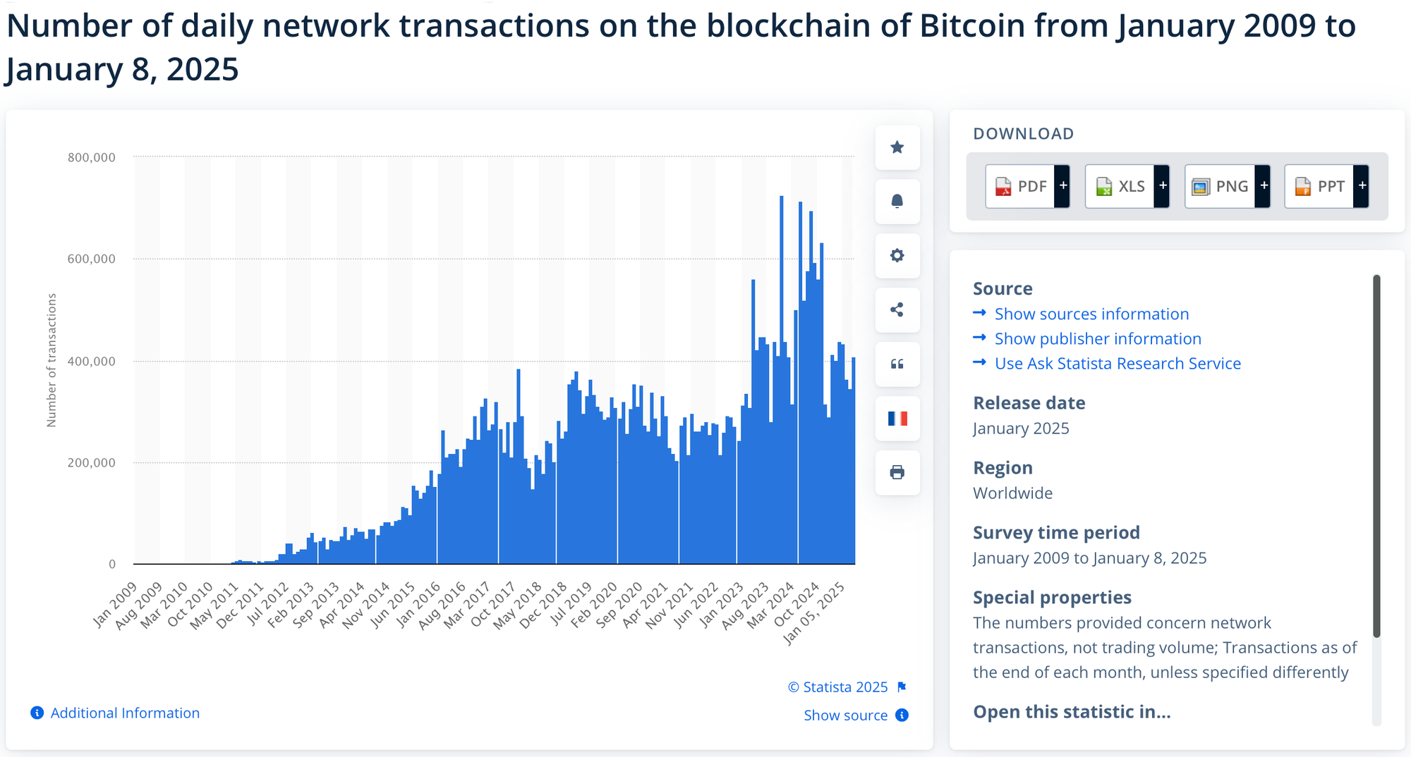 Bitcoin, as the first and most recognized cryptocurrency and it remains a cornerstone of the blockchain space. Its role as a trusted store of value has made it a preferred asset for both institutional and individual investors. Additionally, its increasing use in payment systems and innovative solutions like the Lightning Network highlights its growing functionality. With over 300,000 daily transactions (source) and steady growth in active wallets, Bitcoin continues to be a critical chain for developers seeking reliable, high-demand data.
