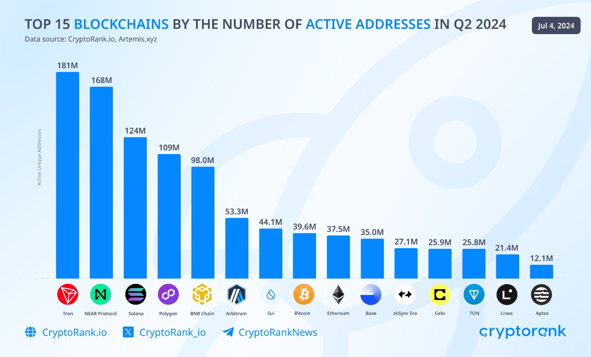Additionally, TRON continues to demonstrate impressive on-chain activity, with over 181 million active addresses in Q2 2024 as well.