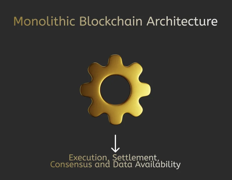 Monolithic blockchain means a blockchain structure with a unified architecture where each node is responsible for consensus, data availability, and execution. In Monolithic chains, all transactions are verified on-chain, and the node protocol plays the role of the payment layer. All operations are processed on a single layer or the same layer, and they operate in tightly coupled chain groups. Blockchains that handle all roles, such as Polkadot's parachains or Avalanche's subnets, do not correspond to modular architecture.