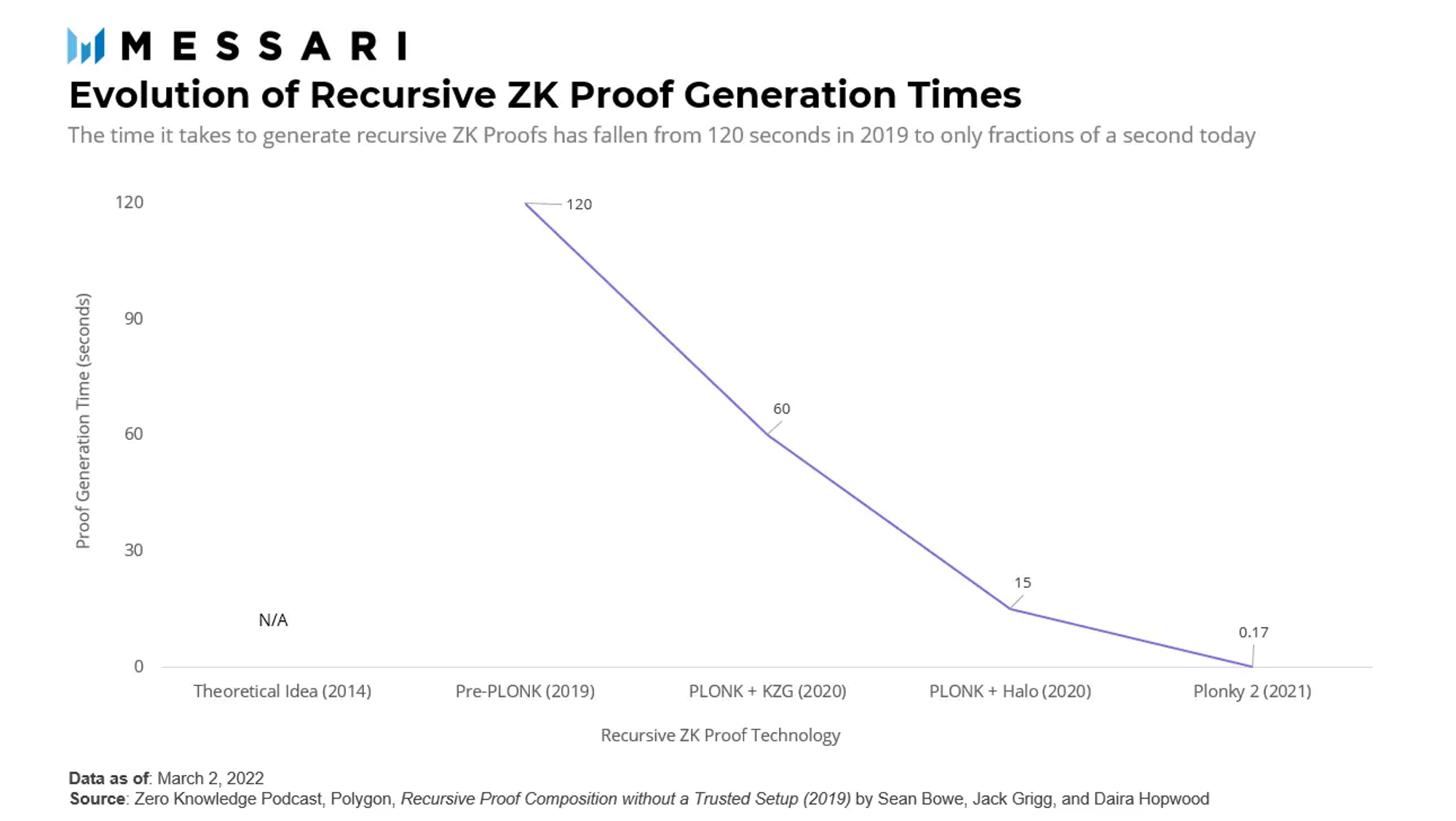 Recursive proofs are an important concept in zero-knowledge proof systems, the process proving the verification of a proof again. Recursive proofs can compress multiple proofs into one, reducing the overall size of the data and speeding up the verification process. Similar to how a Merkle root created through the Merkle tree method can quickly verify the validity of multiple blocks, recursive proofs can verify the validity of multiple Validium blocks at once, leading to faster blockchain processing.