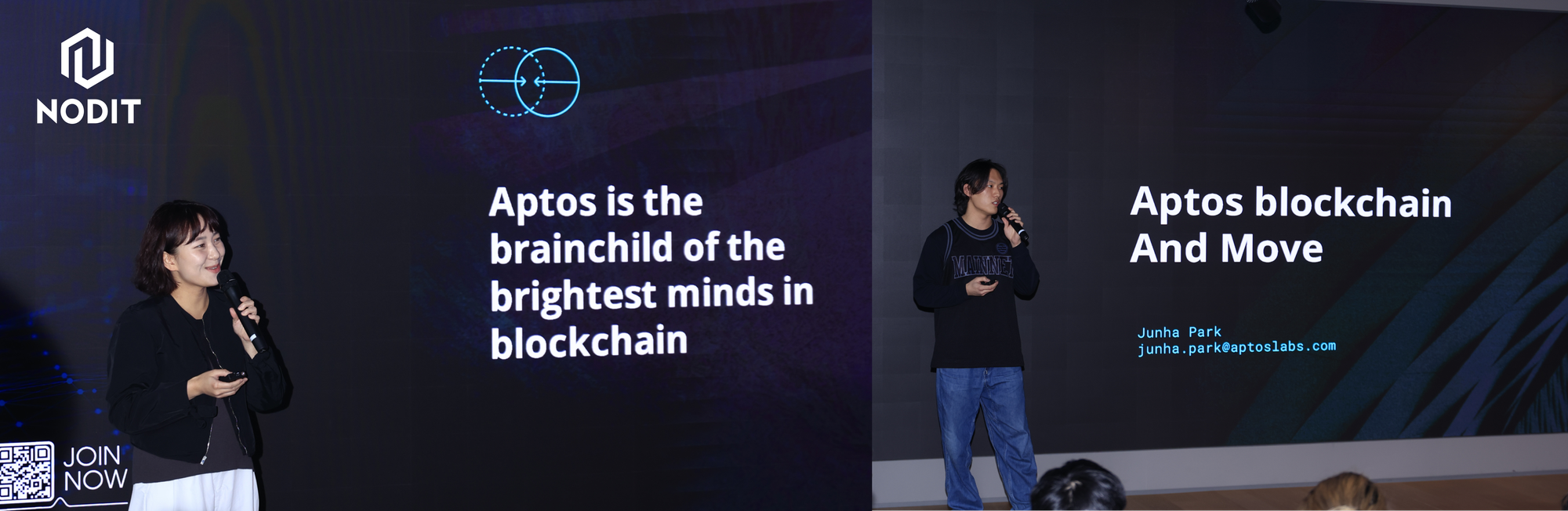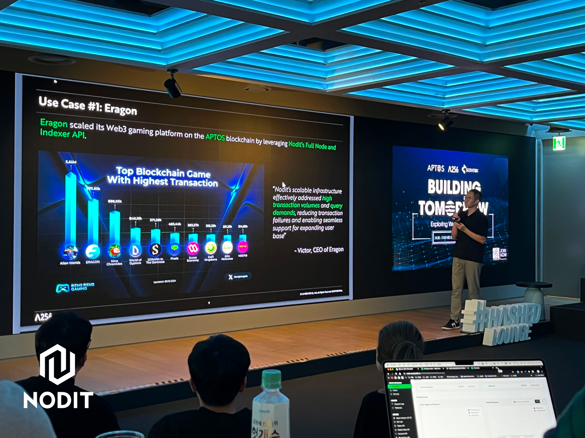 2) Jae Kim, Nodit’s Business Lead has presented the company’s services, highlighting the Full Node Service, Aptos Indexer API, and use cases from partners like ERAGON.