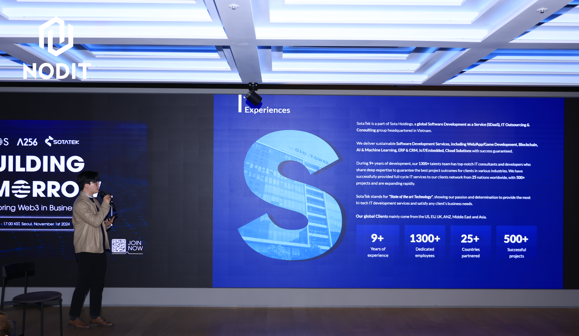 As highlighted on our X (Twitter), we had an inspiring day co-hosting a B2B event, Building Tomorrow, with APTOS and the renowned Vietnamese outsourcing company Sotatek on November 1, 2024, in Seoul. This event offered invaluable insights to Web2 companies exploring Web3 integration and the rapidly evolving landscape of blockchain technology.