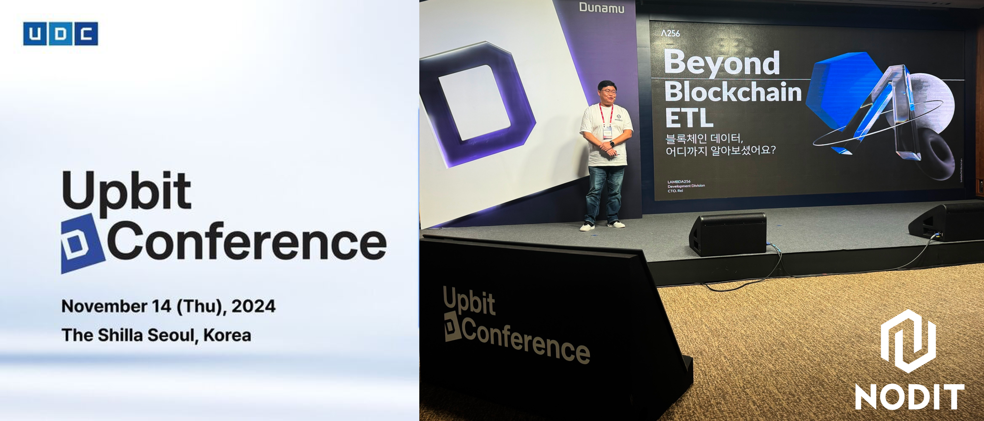 As a blockchain development platform by Lambda256, a subsidiary of Dunamu, Nodit was represented at UDC (Upbit D Conference) on November 14th, where our CTO, Rei Nam who shared insights into effective blockchain data processing and utilization. Rei emphasized the vast potential of blockchain data, explaining how ETL technology is key to managing its complexities and introduced our vision for advancing data processing in the Web3 space.
