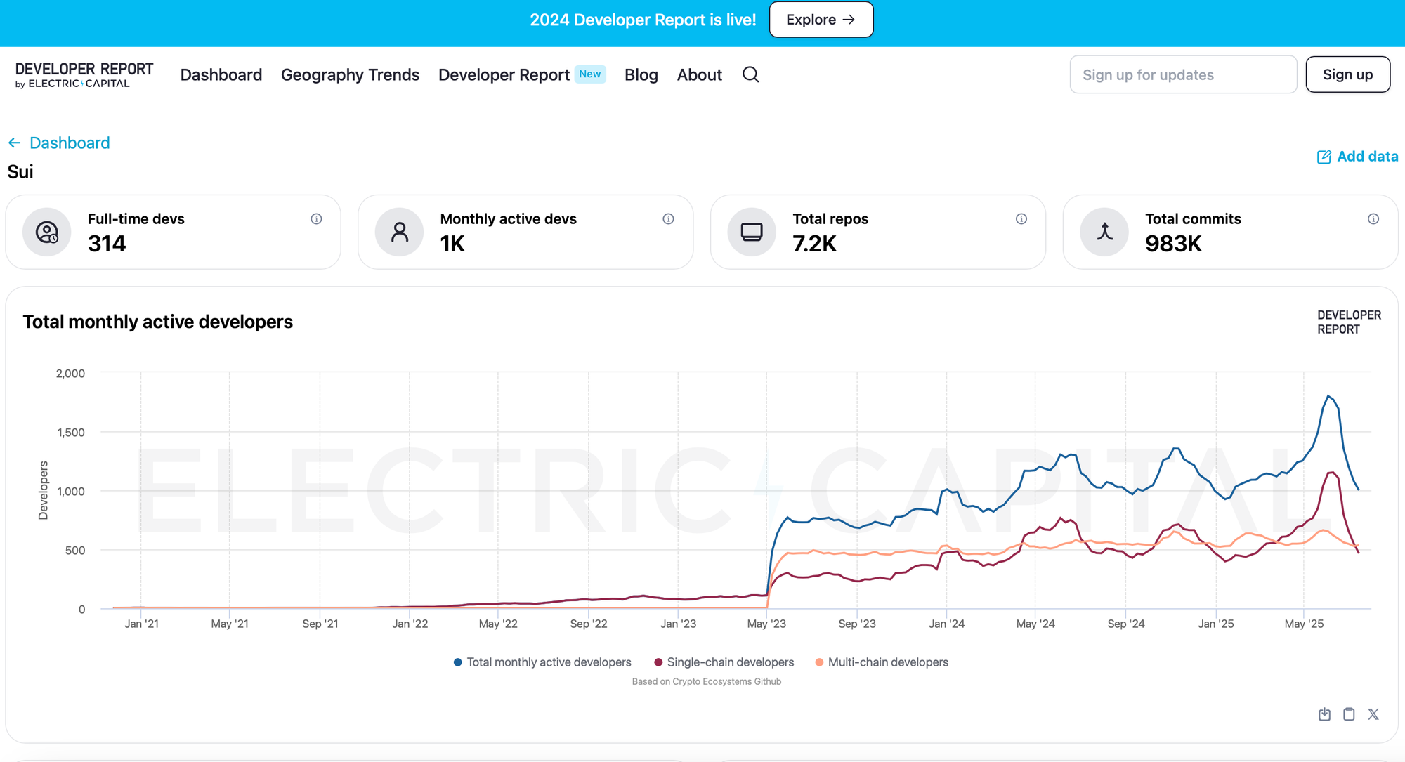 According to the Electric Capital Developer Report released on July 3, 2025, Sui ranks as the second fastest-growing Layer 1 developer community over the past year, growing at 16.1%, just behind Solana’s 17.7%. It has also entered the top five in total developer count among Layer 1 chains. These are significant indicators of momentum and directly influenced Nodit’s decision to move forward with Sui integration.